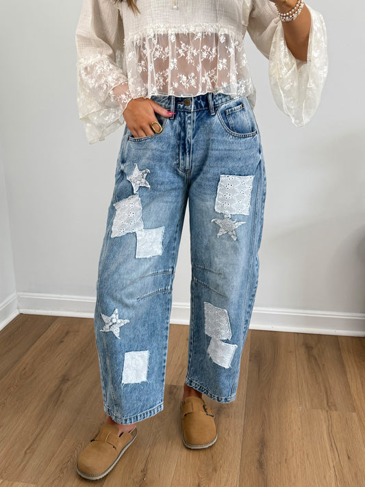 Lucky Stitch Barrel Jeans