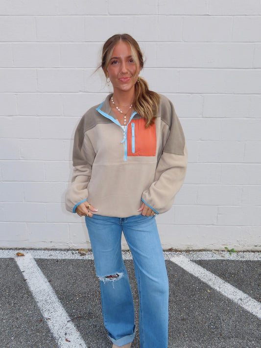 Take It Easy Layered Pullover (Grey, Navy & Clay)