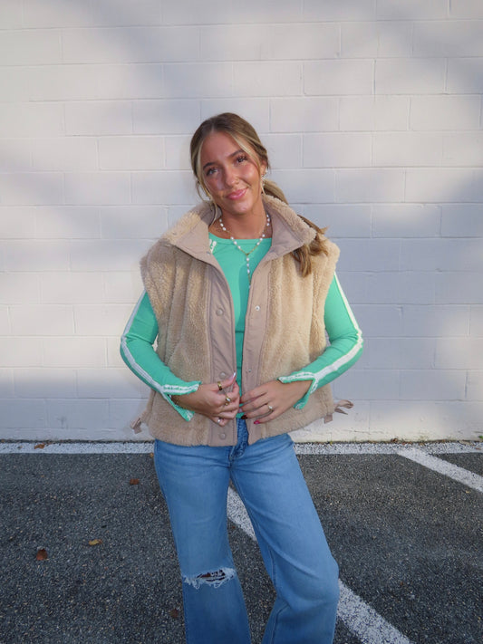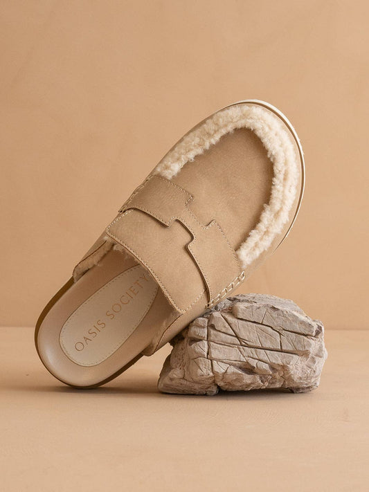 The Avalon Suede Shearling Cozy Loafer Mule (Khaki & Carmel)