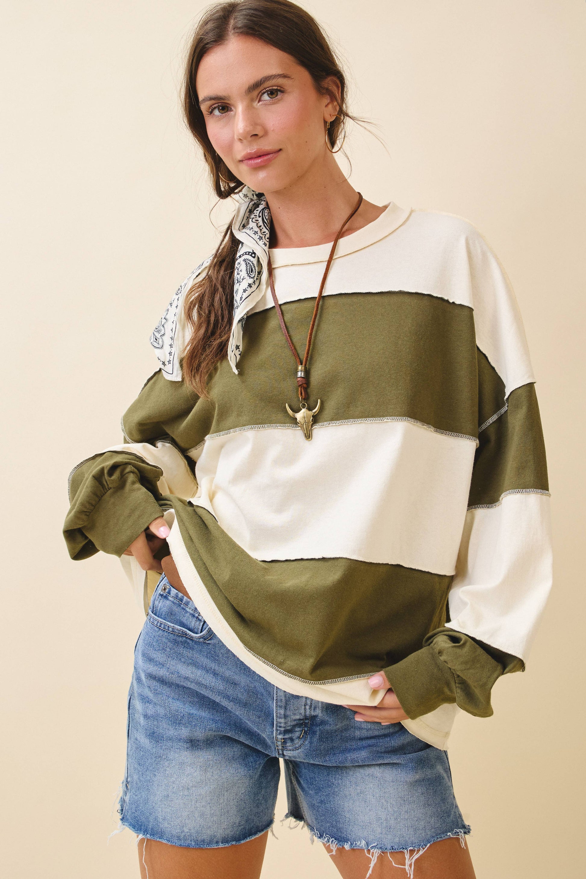 She’s got that easy, throw-on-and-go energy with bold paneling and a loose, boxy fit. Soft seams and laid-back lines make her the perfect cozy top for breezy days and chill nights.