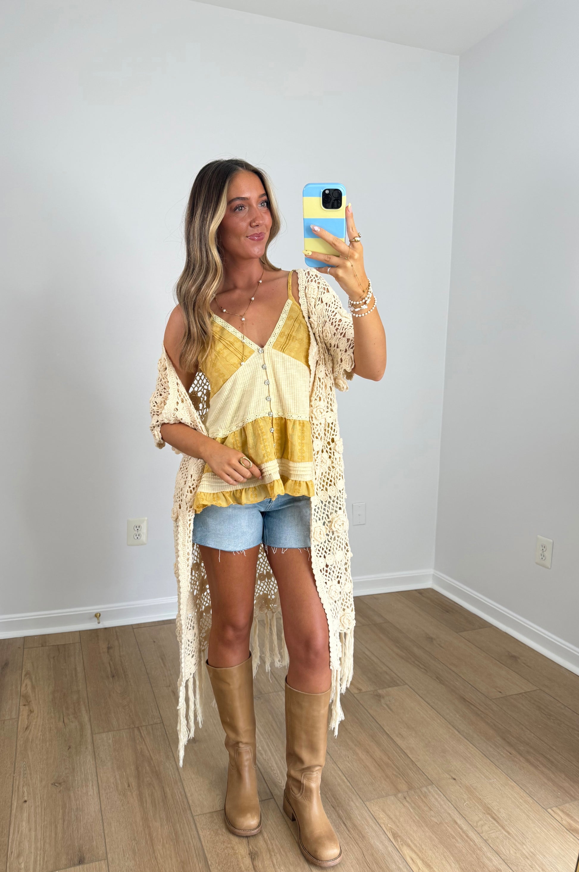 This dreamy patchwork tank features soft textured fabrics, delicate button details, and the cutest flowy fit. Lightweight and effortless, it’s the perfect throw-on with denim shorts, jeans, or layered under your favorite cardigan.